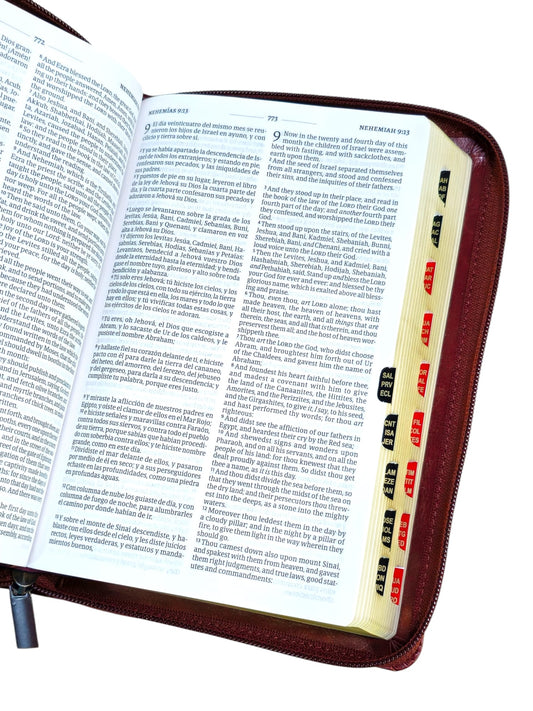Biblia Bilingue Con Cierre RVR1960/ KJV Tamaño Manual Piel Marrón Con Indice