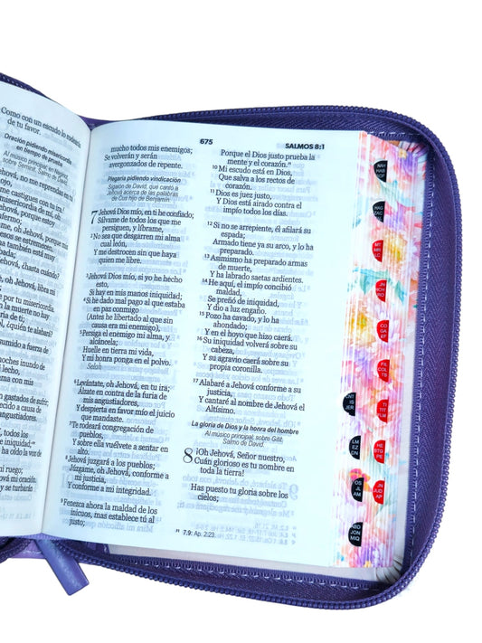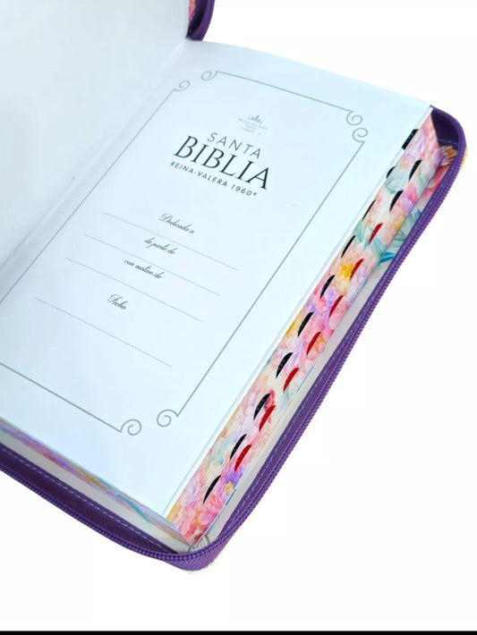 Biblia de Bolsillo con cierre RVR.1960 para mujer jardin lila con indice