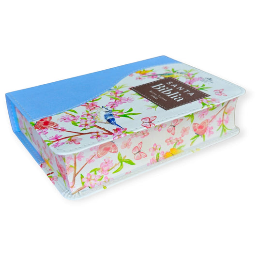 Biblia de Bolsillo con cierre RVR.1960 Imitación Piel azul flores