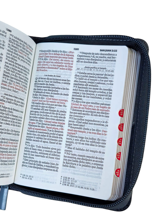 Biblia bilingue tamaño manual RVR.1960/ KJV simil piel negro Con indice cierre