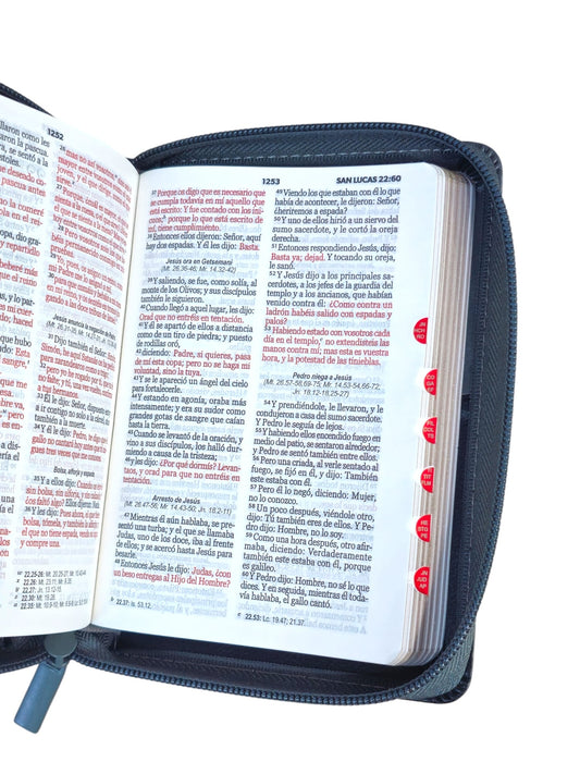 Biblia de Bolsillo espada con cierre RVR.1960 piel negro/gris con indice