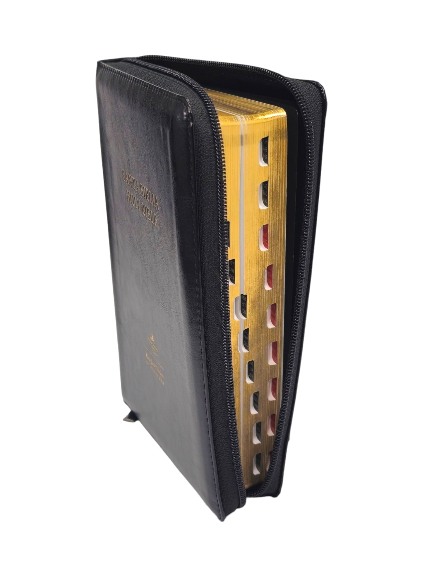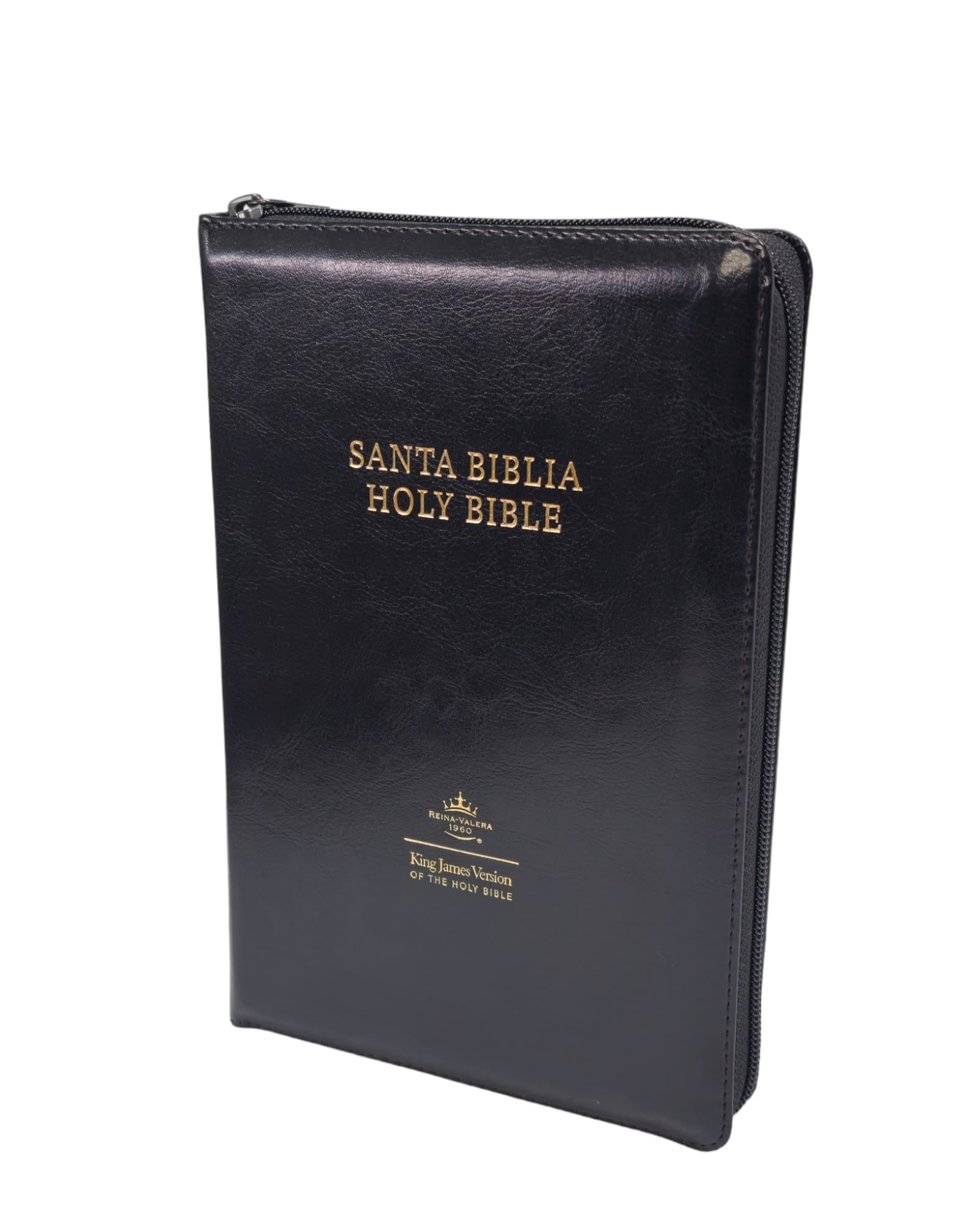 Biblia bilingue tamaño manual RVR.1960/ KJV simil piel negro Con indice cierre